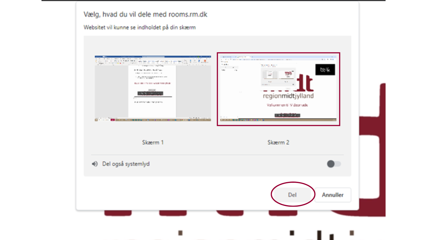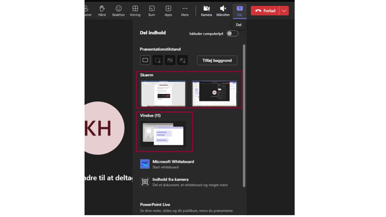 Har du brug for at dele din skærm evt. med PowerPoint, så finder du en guide herunder til, hvordan du gør både trådløst og med et HDMI-kabel.